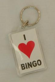 | Acrylic Keyring: Great for anytime as Bingo Customers love their BINGO! We can print the stock slogan: I Love Bingo on 1 side of keyring and your information on the 2nd side of keyring (as shown above) |