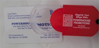 | 2 x Magnifier Keyring: A very handy item to keep in the purse, car or pocket when a little extra help in reading is required. The 2x magnifier slides out of its case for added convenience and is attached to a keyring! Comes in blue, red, green & white. Our stock layout is to print a bingo card on the front next to your information. Idea!! For Valentine's Day, choose red, and we'll print a heart in place of the bingo card. For a Patriotic Holiday, choose red and blue, and we'll print a waving flag. For St. Patrick's Day, choose green and we'll print a shamrock. For Easter, choose assorted colors and we'll add a bunny! Optional Slogans: My Heart Belongs to: Proud to be an American! My Lucky Place to Play! Hop on over to: Compliments of: |