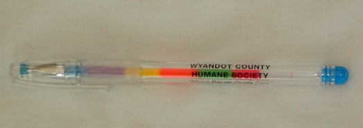| Rainbow Ball Point Pen: This pen is very popular as there are 6 different colors of gel ink in the clear barrel; pull off cap. The ink will change colors when writing, as one color runs out and is replaced by the next! Very fun, yet functional. We'll print your information in black for a nice contrast. Optional Slogans: Happiness is Yelling Bingo at: Compliments of: |