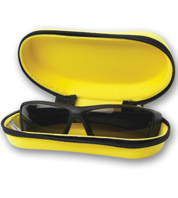 | Sunglass Case with Clip: Soft-support sunglass holder provides added protection. Durable clip attaches sunglass holder to backpacks, golf bags and beach bags. Fits most sunglasses. Comes in color shown above. NOTE: Sunglasses not included. Optional Slogan: Compliments of: |